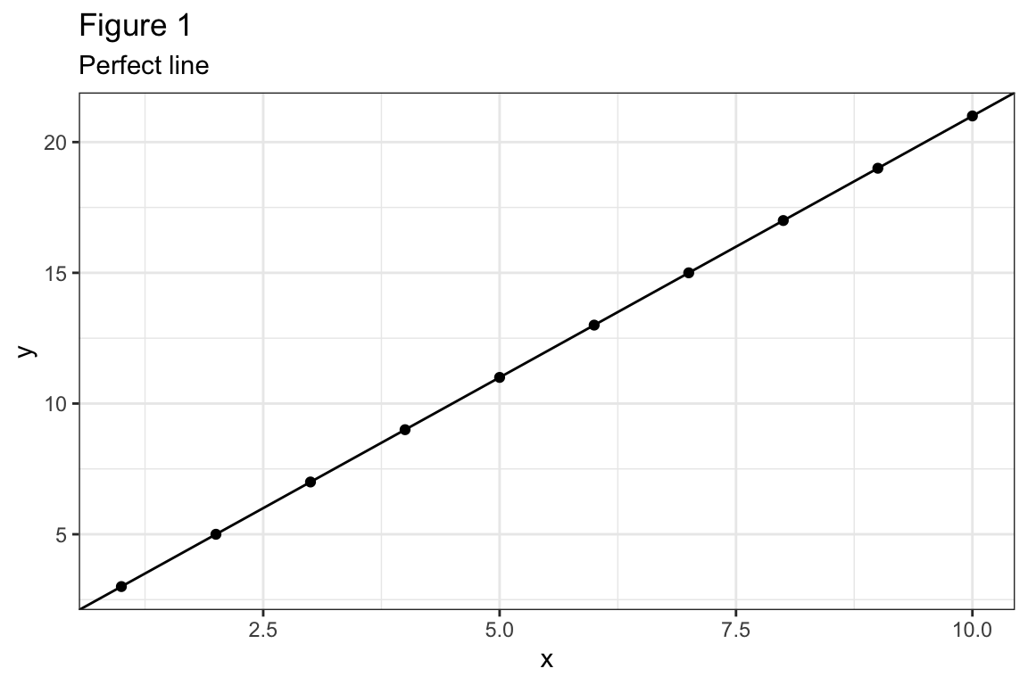 \(|cor(\boldsymbol{x},\boldsymbol{y})| = 1 \iff \boldsymbol{y}= \beta_0 \boldsymbol{1}+ \beta_1 \boldsymbol{x}\) for some \(\beta_0\), \(\beta_1\). See Figure 1.