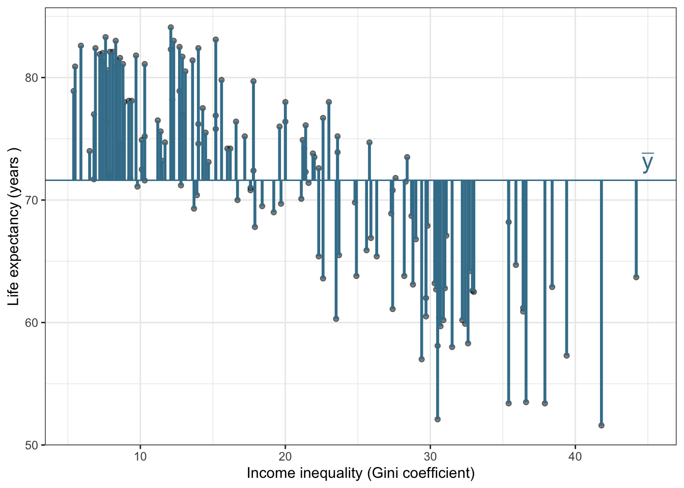 Goal: Use the income inequality in a country to understand variability in the life expectancy.