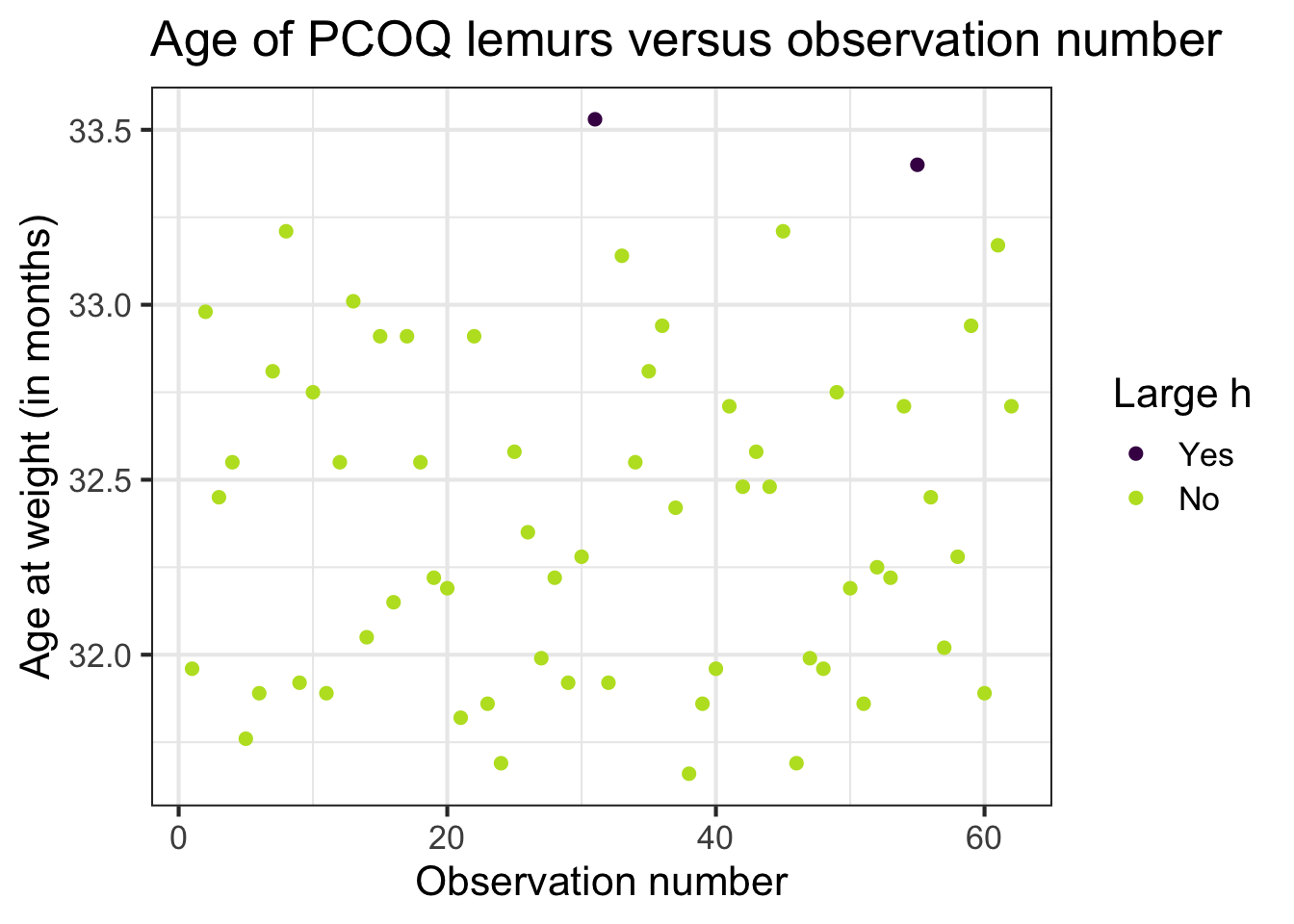 Observations with large values of \(h_{ii}\) are far away from the typical value (or combination of values) of the predictors in the data