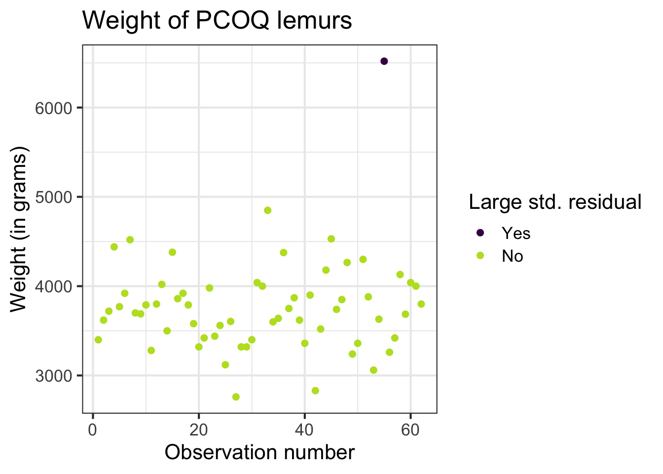 Today’s data contains a subset of the original Duke Lemur data set available in the TidyTuesday GitHub repo. This data includes information on “young adult” lemurs from the Coquerel’s sifaka species (PCOQ), the largest species at the Duke Lemur Center. The analysis will focus on the following variables:
